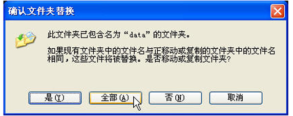 單擊”全部(A)”按鈕,覆蓋新版本軟件的”data”文件夾的所有內(nèi)容