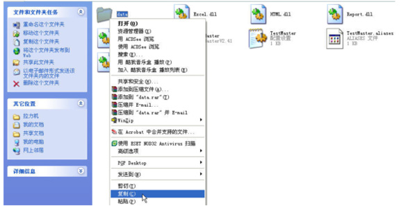 3.鼠標(biāo)右鍵單擊老軟件文件夾中的”data”文件夾,左鍵點擊”復(fù)制”選項,如下圖所示:
