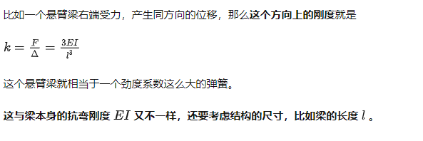 對于結構來說,一根杠件的抗彎度并不能反映主要問題,我們更關心的是結構在力的作用下產生的位移,也就是說要分清楚是哪個力和哪個位移的關系,剛度也要具體到是哪個力與哪個位移之間的剛度。