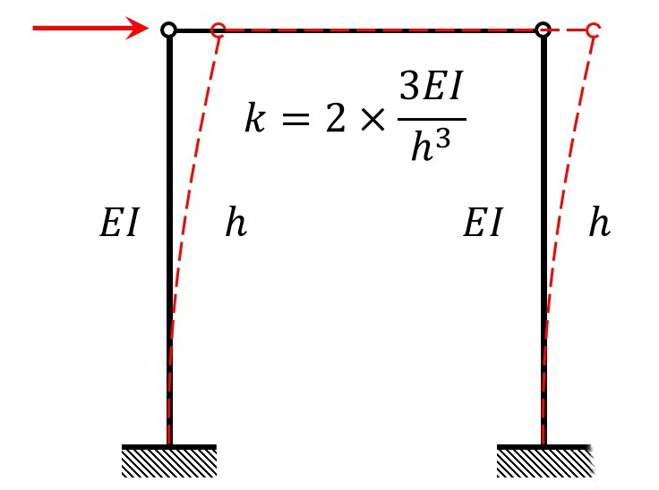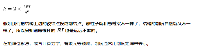 比如上圖中的排架,如果在水平力作用下產生水平位移,兩個柱子就相當于懸臂梁,那么途中箭頭方向上的剛度就是