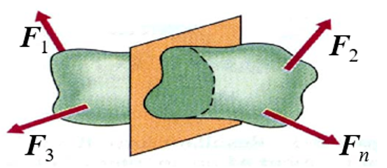 假想截開:在所求內力的截面處(一般是橫截面),假想地用截面將桿件一分為二。