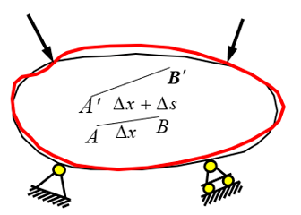 如圖我們考察構件內任一點A,在A點附件取任意點B,AB的長為Dx,在外力作用下構件發生變形,A、B兩點均產生位移到新的位置,則兩點之間的距離變成了Dx+Ds,設在Dx范圍內其變形是均勻的,可得平均線應變