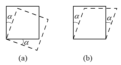 (a)圖所示角應變為零(產生了剛體位移,沒有發生變形);(b)圖所示角應變為a